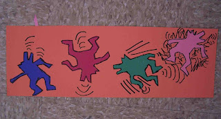 - Sarah Ellis Traci has a great Haring lesson where children paint full size Haring figures and make a HUGE mural in the lunch room or down a hallway.